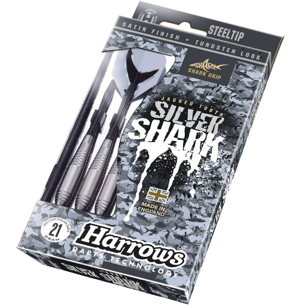 Composed from a tough Alloy and Zinc Copper, the Silver Shark darts are designed for the developing player. The aggressive reverse cut shark grip allows for consistent release.