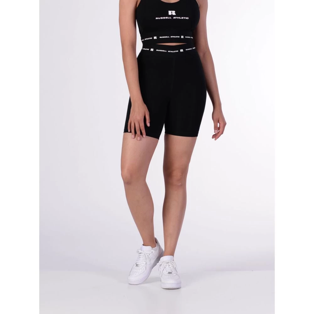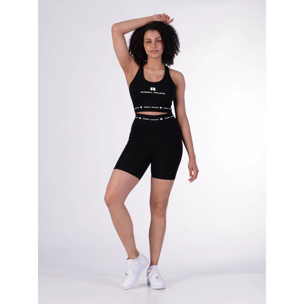 Body hugging flattering fit, 1 col gloss rubber print elastic waistband, side panels with flatlock